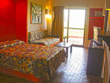 1 cama King size, 2 camas individuales y 2 sofá cama, capacidad máxima de 6 adultos. Cuenta con cocina equipada con microondas, refrigerador y loza. Aire acondicionado, televisión y amenidades en el cuarto de baño.